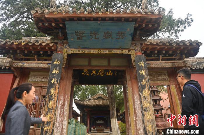 10月23日,甘肅省天水市秦安縣鳳山景區,游人參觀蘇淵雷所題“秀岳先春”的匾額。中新社記者 李亞龍 攝