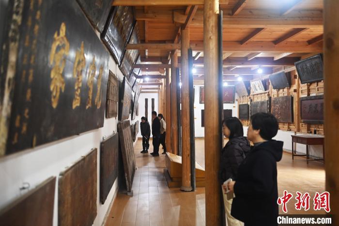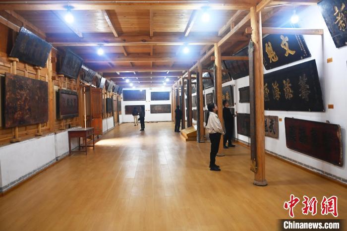 10月23日,甘肅省天水市秦安縣明清街秦安匾額博物館,游人參觀當地收藏的匾額。中新社記者 李亞龍 攝
