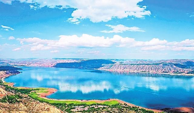 炳靈湖 雄偉的劉家峽大壩阻斷黃河,在永靖境內聚成了一座高峽平湖。因這座湖毗鄰炳靈寺石窟和雄奇險秀的炳靈石林,故稱其為炳靈湖。整個湖水,在夏秋季呈綠色,就像一塊翡翠鑲嵌在群山之中,散發著耀眼的光芒,夏秋呈翡翠色,冬春呈藍色,由于水質清澈,群山倒映水中,水天一色,加之湖面廣闊無垠,看上去平靜如海。但每當劉家峽水庫泄洪的時候,磅礴的氣勢猶如蛟龍出水,翻江倒海,氣沖云天。