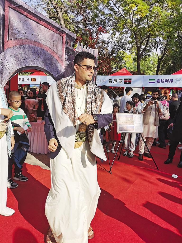 當日下午,記者來到現場看到,中國、馬達加斯加、蘇丹、俄羅斯、德國、也門、斯里蘭卡、印度……各國展臺前人們摩肩擦踵,空氣中彌漫著美食的味道與火熱的激情。身著各國傳統服飾的人群中,滿目都是俊男靚女,讓人恍若置身國際大都會。