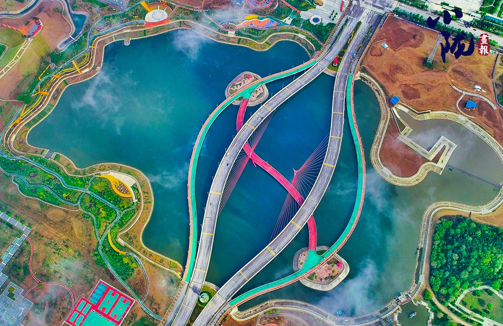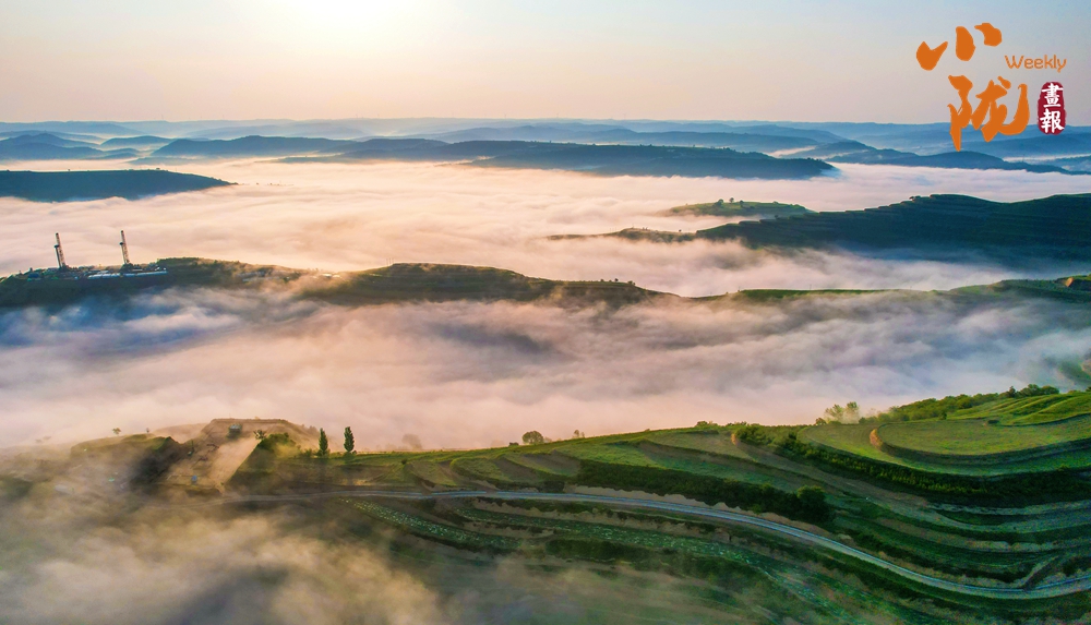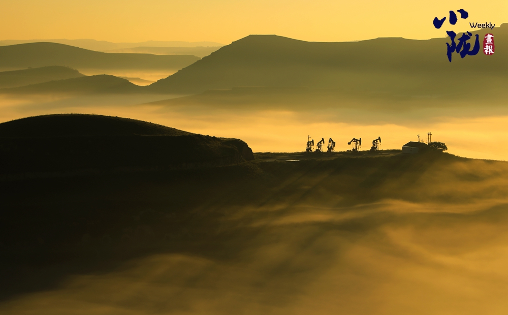 傍晚,空中泛起淡淡云霧環繞在溝壑之間,呈現出華池別樣的霧海景觀,遠處一架架抽油機在上下舞動,“舞姿”靈動而優美。