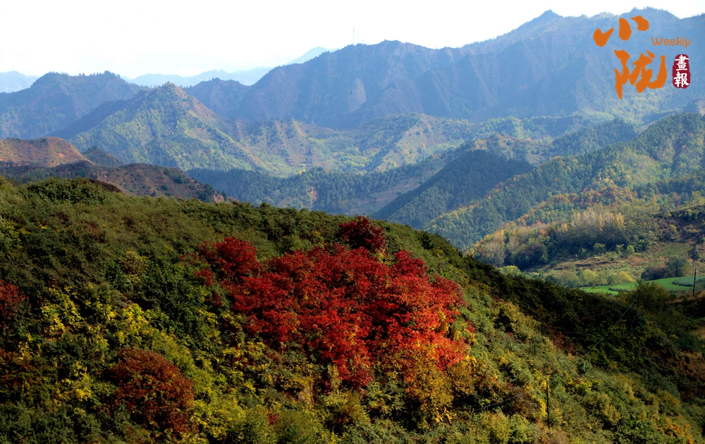 在陽光照耀下,中梁山披上多彩盛裝,山川、溝壑層林盡染,美景如畫。