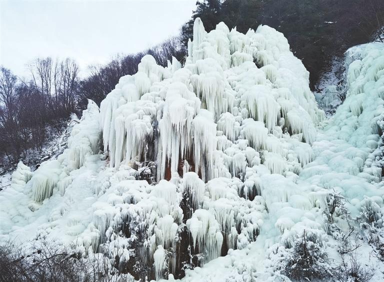美輪美奐的冰雪景觀、趣味十足的冰雪項目……踏入渭河源東源景區,仿若闖入一個冰清玉潔的琉璃世界,雪道、冰掛、雪雕等打卡區初具雛形。工作人員忙碌地平整雪道、調試設備,為冰雪旅游全力準備。半山處,冰瀑恰似銀河倒掛,氣勢恢宏又不失婉約之態,在日光的映照下,折射出五彩華光,似夢幻仙境。冰瀑周身,冰掛百態千姿,或尖銳如狼牙,或柔順若絲絳,或玲瓏似珊瑚,宛如自然女神精心雕琢的稀世珍寶,鬼斧神工,令人嘆為觀止。