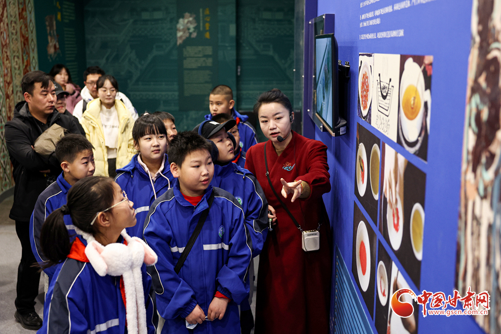 12月29日,蘭州市城關區安樂村小學學生在家人的陪同下來到敦煌研究院蘭州分院敦煌藝術館,欣賞“覺色敦煌 莫高精神”敦煌石窟藝術展,在周末時光近距離感受敦煌文化藝術的魅力。