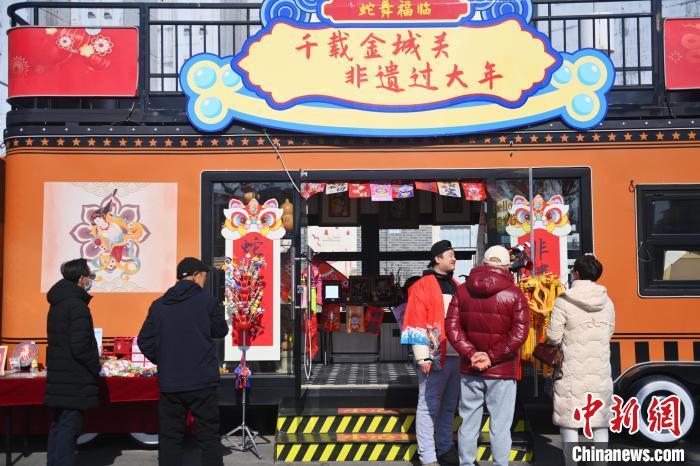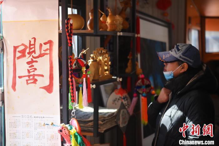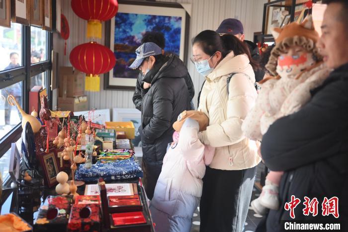 2月8日,甘肅省蘭州市城關區“非遺年貨購物月”活動現場,游人選購非遺文創產品。中新社記者 李亞龍 攝
