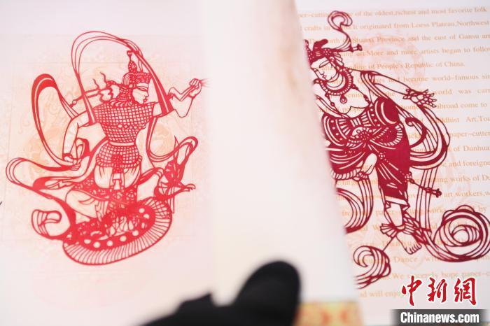 2月8日,甘肅省蘭州市城關區“非遺年貨購物月”活動現場展出的敦煌剪紙文創產品。中新社記者 李亞龍 攝