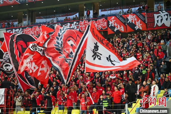 2025年3月2日,在四川成都舉行的2025賽季中超聯賽比賽中,成都蓉城隊(紅衣)主場迎戰天津津門虎隊。火爆的“金牌球市”折射出成都賽事經濟的日益崛起。劉忠俊 攝