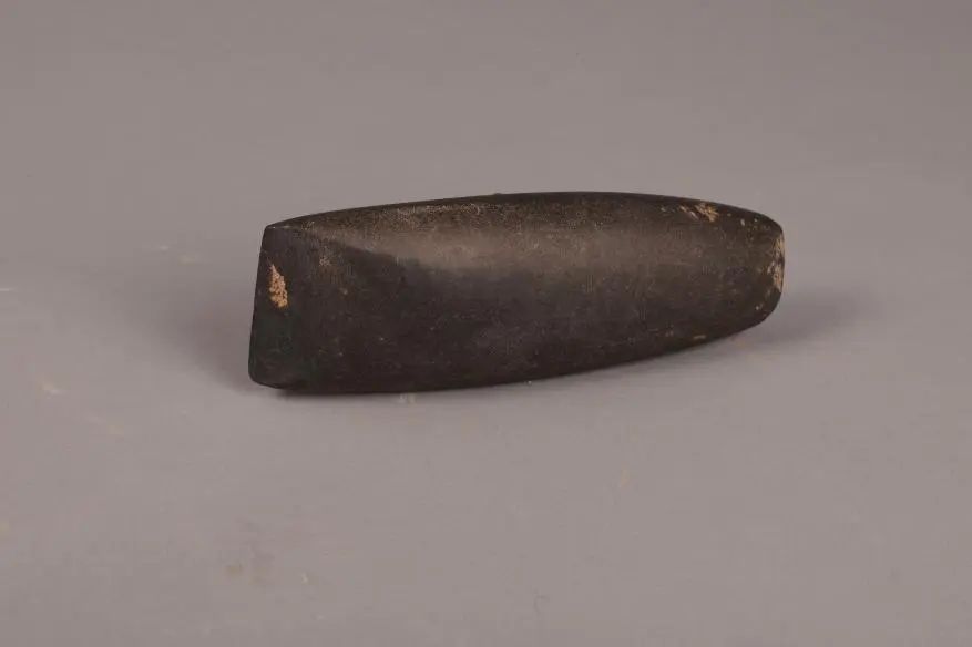 出土單孔玉斧(慶陽(yáng)市博物館藏)