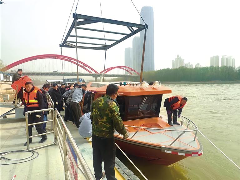 中國甘肅網3月27日訊 據蘭州日報報道 3月26日,新型水上巴士“水墨丹霞一號”在鹽場堡碼頭成功下水,正式加入蘭州水上交通的大家庭。
