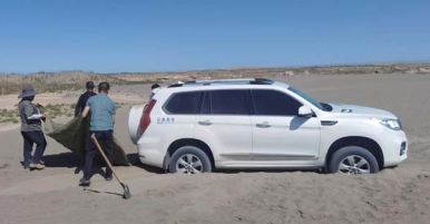 車子終于在陷入沙地3小時后脫離困境。考察團(tuán)在羊井子鄉(xiāng)用過午餐后返回酒泉。