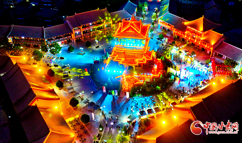 5月23日,甘肅省張掖市甘州區甘州府城內,燈光秀、書畫展、文藝展演、非遺展示令人目不暇接,美食一條街的各色美食飄香四溢,吸引眾多游客和市民前來拍照打卡,盡享夜晚美好時光。