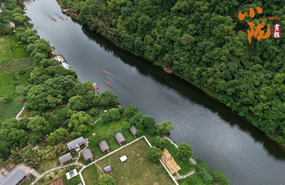 這里滿目青翠,云遮霧罩,山川形勝,樹影婆娑,綠波蕩漾,能讓你感受到,“舟在碧波上,人在畫中游”的詩情畫意。在這青山綠水間,一個(gè)個(gè)青瓦白墻的新農(nóng)村被綠樹掩映,溪流潺潺,宛如一幅幅動(dòng)人的畫卷。