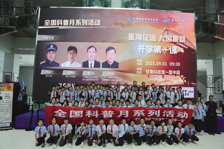 中國甘肅網9月3日訊 據蘭州晚報報道 9月1日,全國科普月啟幕之際,甘肅科技館一場別開生面的科普講座開講。活動特邀空軍大校焦國力、清華大學教授董景新、蘭州萬里航空機電有限責任公司副總工程師吳朝選、中國航天科技集團五院510所科技委秘書長雷占許四位科普專家,為120余名學生帶來精彩紛呈的“開學第一課”,帶領他們遨游星辰大海、探秘國之重器。