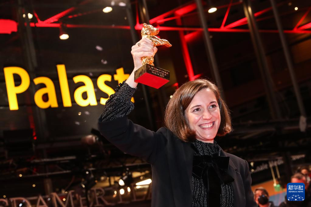 2月16日,在德國柏林,影片《阿爾卡拉斯》的導演卡拉·西蒙在頒獎儀式后亮相紅毯。該影片獲得最佳影片金熊獎。新華社記者 單宇琦 攝
