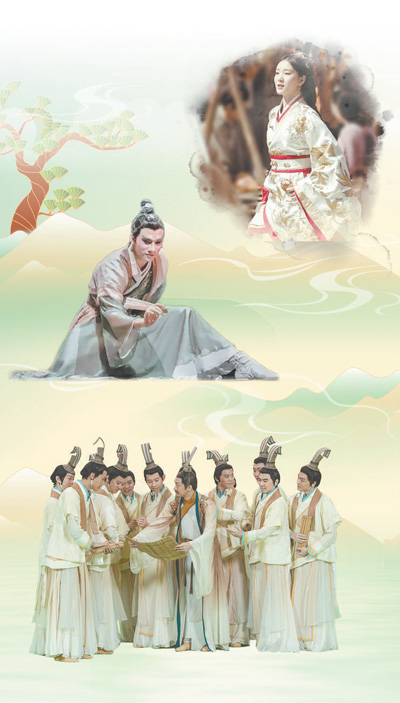 圖片從上至下依次為綜藝節目《舞千年》劇照、國風舞蹈《紙扇書生》《孔子》劇照。 制圖:趙偲汝