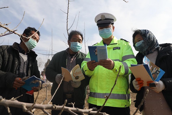 近日,禮縣公安局交警大隊在做好疫情防控工作的同時,組織民警走進田間地頭,有針對性的開展交通安全宣傳教育,民警通過口頭提示、發(fā)放資料,講解發(fā)生在身邊的真實案例,面對面向村民們講解農(nóng)用車輛違法行為的危害性,使農(nóng)村群眾認識到交通違法行為的嚴重危害性,進一步提高交通安全意識,自覺抵制交通違法行為。通訊員 楊含龍 攝
