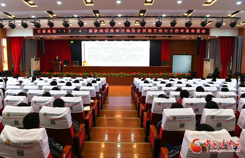 中國甘肅網12月4日訊(本網記者 李紅軍)12月4日是第七個“國家憲法日”。今天下午,甘肅省法院少年法庭的法官走進蘭州市第六十四中學,開展以“深入學習宣傳習近平法治思想、大力弘揚憲法精神”為主題的憲法進校園宣傳活動。該校300余名師生代表在學術報告廳聆聽了宣講報告,兩名基層法院人民陪審員應邀參加了活動。