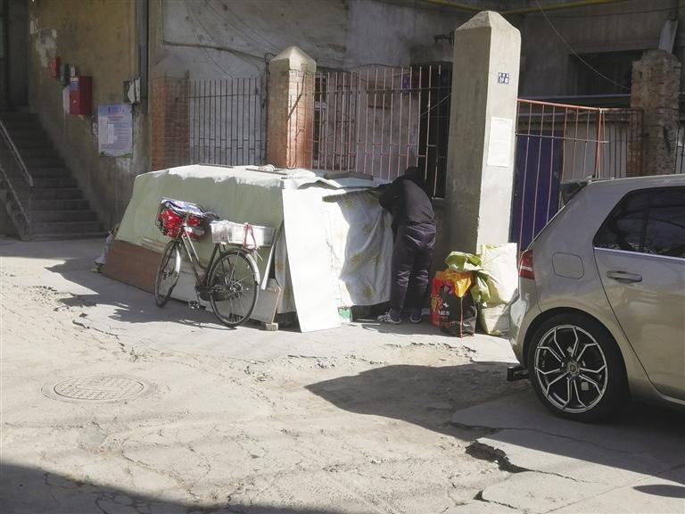 隨后,記者來(lái)到閔家橋59號(hào),破舊的小區(qū)內(nèi)堆積的雜物很多,有人堆積紙箱,有人干脆在小區(qū)院子內(nèi)“圈地”堆放私人物品。“不知道人家在堆放什么,可是進(jìn)門(mén)就能看見(jiàn),很不雅觀。”居民李先生說(shuō),小區(qū)是老舊樓院,長(zhǎng)期沒(méi)人管理,衛(wèi)生環(huán)境雖然不差,但是小區(qū)內(nèi)堆積的東西太多。小區(qū)里有一個(gè)收廢品的,每天將回收來(lái)的紙箱堆積在單元樓門(mén)口,另一戶(hù)人家干脆“圈地”將自家的私人物品堆放在這里,用塑料布遮蓋起來(lái),很不美觀。