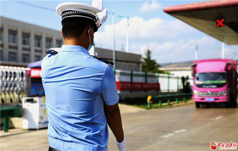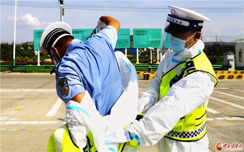 連日來,隴南市禮縣持續出現高溫天氣,禮縣公安局交警大隊執勤民警身著防護服,堅守在道路一線戰高溫,斗酷暑,一手抓常態化疫情防控,一手抓道路交通安全。