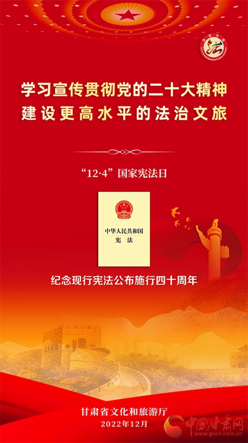中國甘肅網12月7日訊 (本網記者 張蘭琴)自12月4日國家憲法日暨憲法宣傳周啟動以來,我省各地開展了形式多樣的宣傳活動,為深入學習宣傳貫徹黨的二十大精神,不斷增強人民群眾法治意識,形成全民維護憲法的濃厚氛圍,同時加強文化和旅游的法治宣傳教育,省文旅廳近日開展了國家憲法日暨憲法宣傳周系列活動。