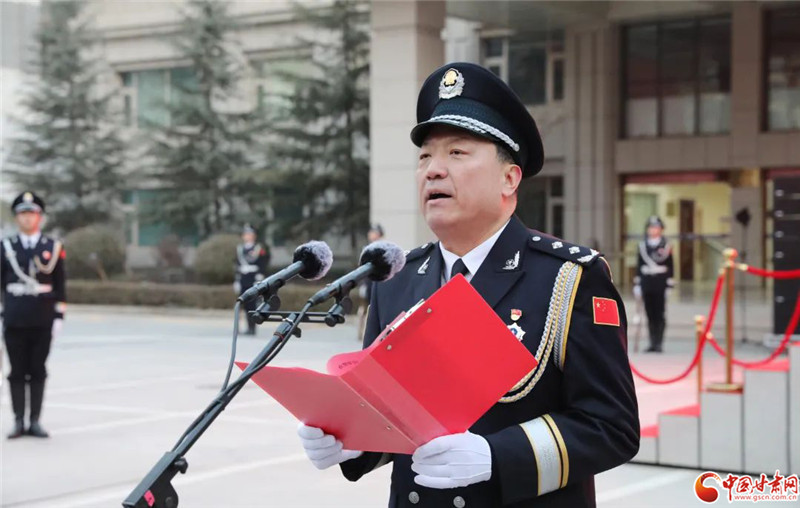 中國甘肅網1月10日訊(本網記者 程?。?月10日,蘭州市公安局舉行升警旗儀式,熱烈慶祝第三個中國人民警察節,進一步激勵全警深入學習宣傳貫徹黨的二十大精神,牢記初心使命、堅定從警信念,匯聚向高而攀、向新而生、向遠而行的磅礴力量,推動新時代蘭州公安高質量發展,為全面建設社會主義現代化國家、全面推進中華民族偉大復興保駕護航。省公安廳副廳長、蘭州市副市長、市公安局黨委書記、局長王立朝出席并講話。