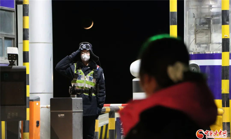 肅北縣公安局公婆泉邊境檢查站民警在執勤卡口執勤