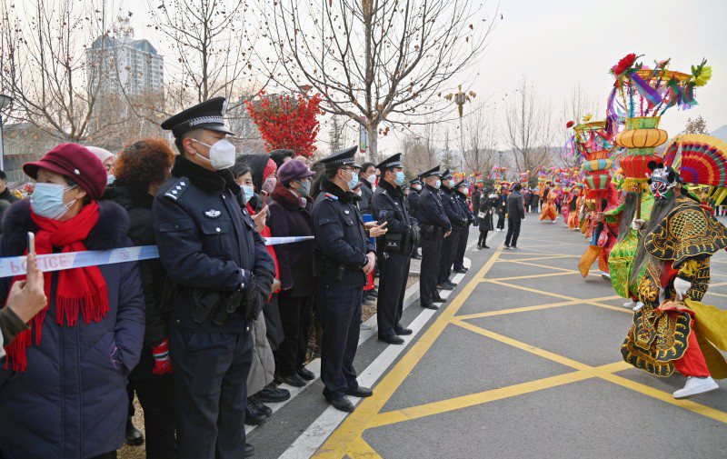 為確保此次活動的絕對安全、圓滿順利,永靖縣公安局調派警力400余人,根據展演路線,劃分現場執勤、交通巡邏、視頻巡控等80余個區域,執勤民警全程跟進、無縫銜接,有序疏通車輛、分流人群,做到定人、定崗、定位、定責,及時為群眾提供暖心服務,全力以赴創造安全、文明、有序的聯歡環境,圓滿完成了社火秧歌展演安保任務。