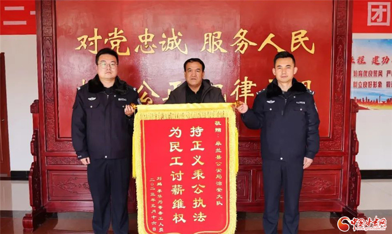 中國甘肅網(wǎng)2月3日訊(本網(wǎng)記者 程健)2月2日,劉先生代表20余名工友將一面印有“持正義秉公執(zhí)法,為民工討薪維權(quán)”的鮮紅錦旗送到了蘭州市皋蘭縣公安局,以此表達對縣局治安管理大隊民警幫其辛苦討要工資的感謝。