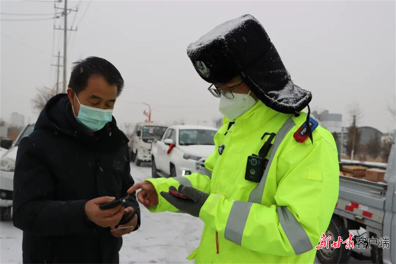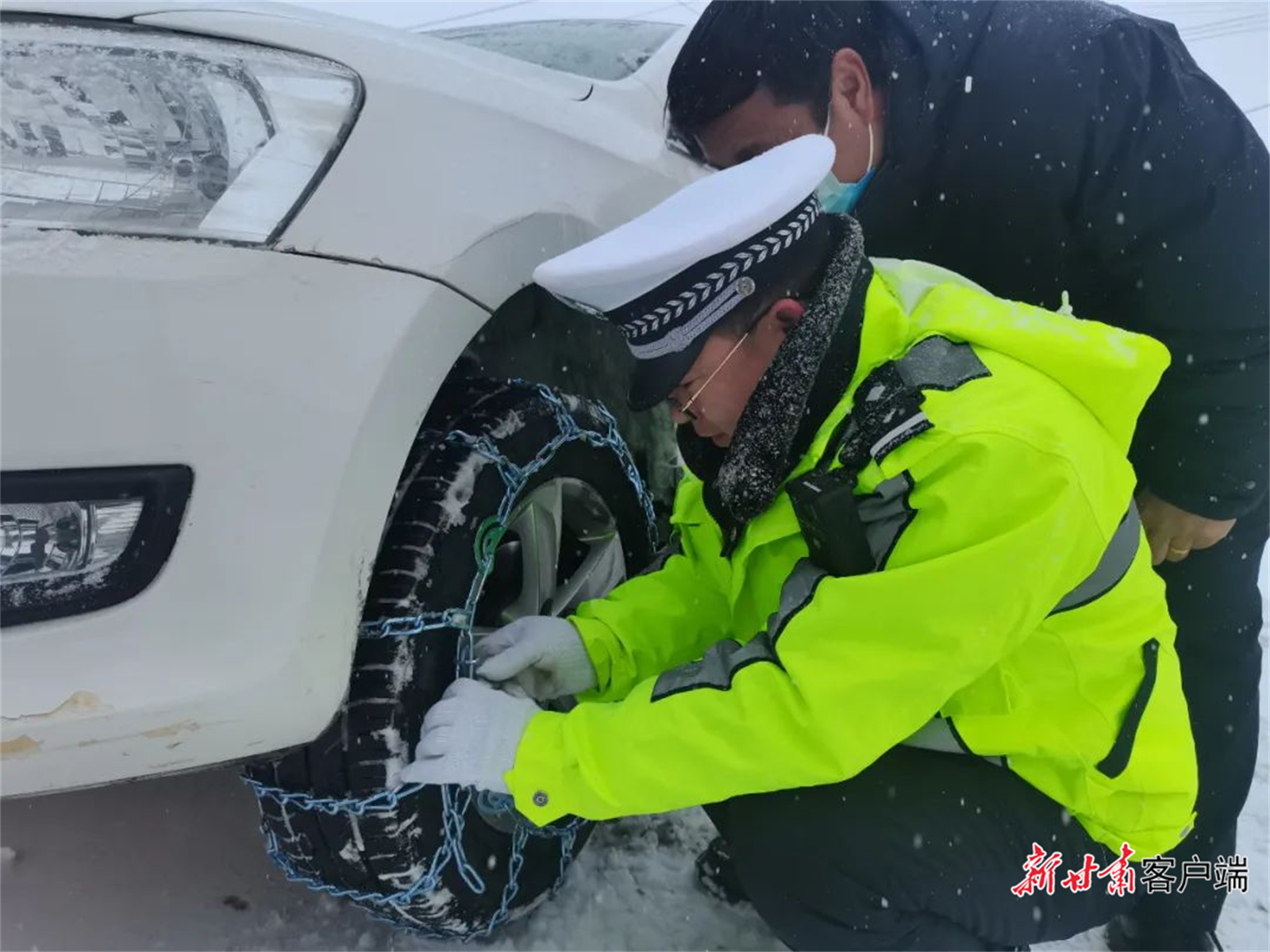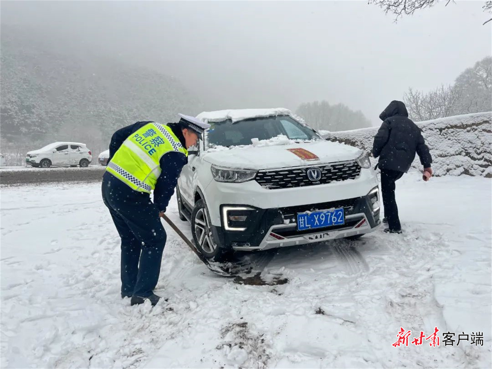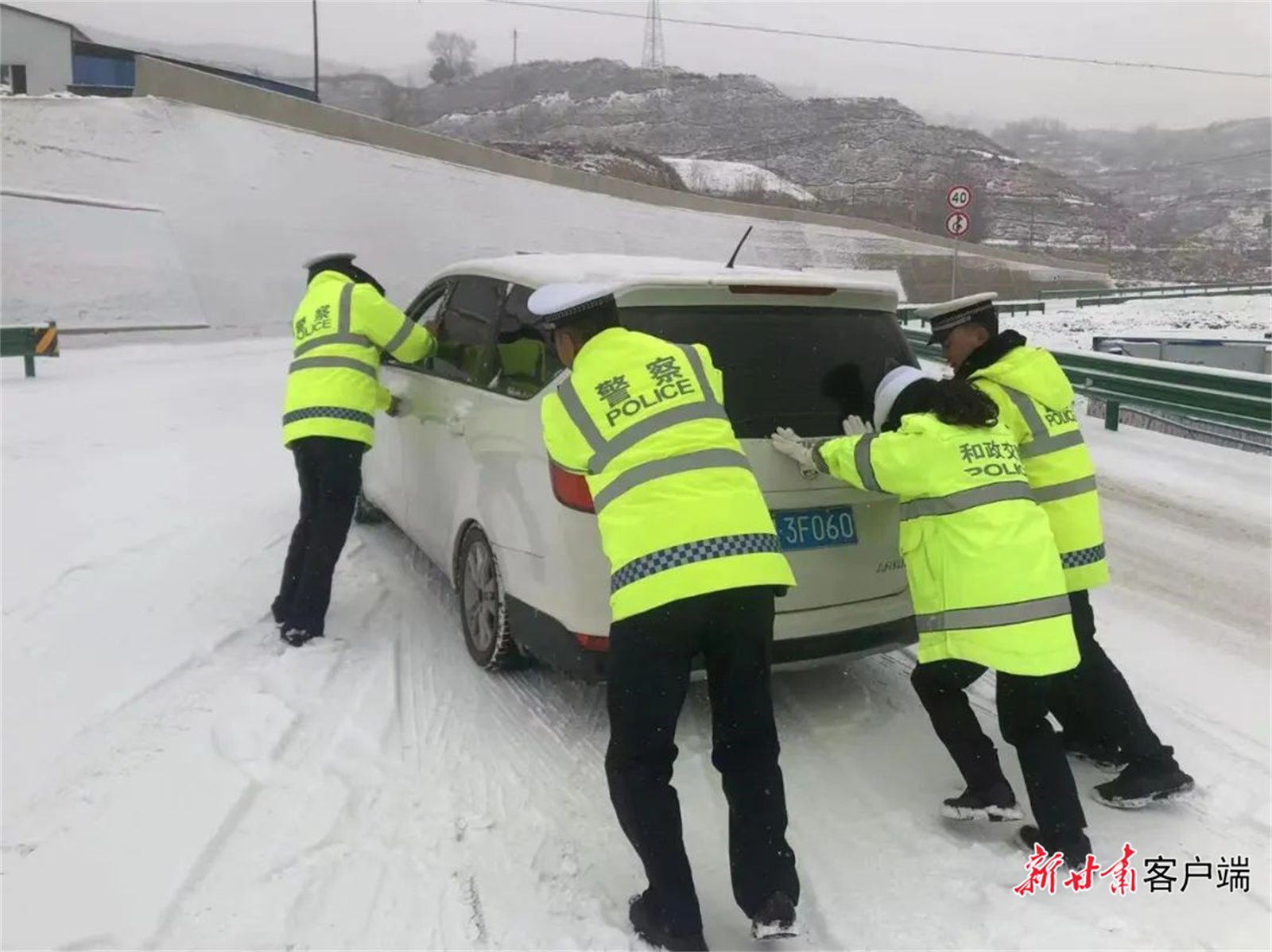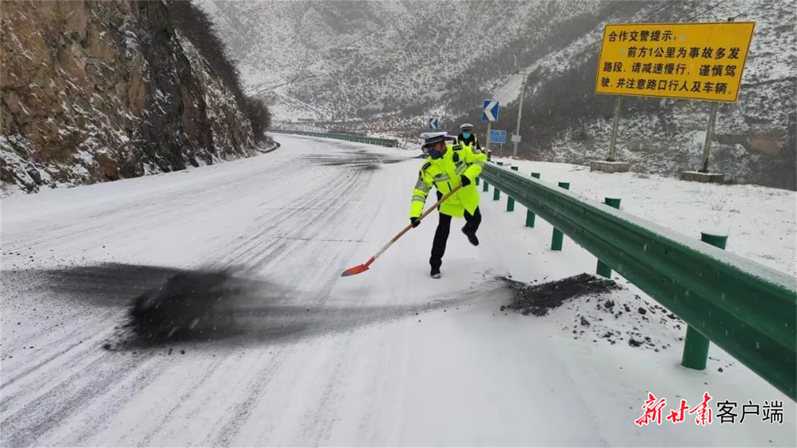 新甘肅客戶端訊(新甘肅·每日甘肅網記者 萬及敏)2月8日上午,甘肅多地出現降雪天氣,部分道路出現積雪結冰現象。為最大限度保障群眾出行安全,預防和減少道路交通事故的發生,全省公安機關1.2萬公安民輔警奮戰一線,加大重點路段巡邏管控力度,采取預警提示、除冰、引導車輛減速慢行、封閉道路、幫助群眾推車等措施,嚴防交通事故發生,為群眾的平安出行保駕護航。