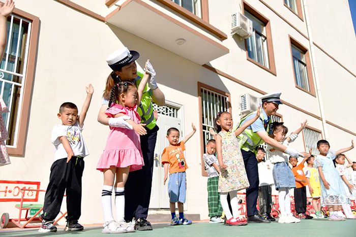 6月13日,臨澤縣公安局交警大隊法治宣傳民警走進濱河幼兒園,通過現(xiàn)場授課、有獎競答、認交通指示牌等寓教于樂的方式向幼兒們普及了道路交通標(biāo)識等常識,提高幼兒們的交通安全意識。新甘肅·甘肅法制報通訊員 安學(xué)海 攝