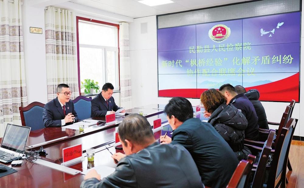 民勤縣檢察院召開新時代“楓橋經驗”化解矛盾糾紛協作配合聯席會議,用心用力用情化解各類矛盾糾紛(2024年3月19日拍攝)。