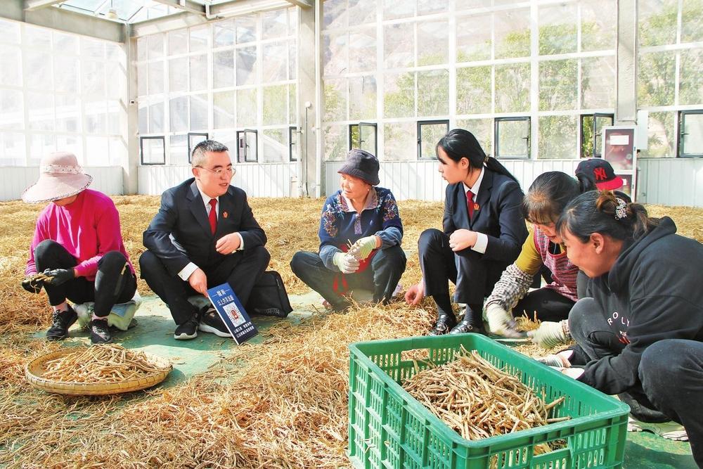 文縣法院安昌河法庭聚焦當地黨參特色產業,組織干警走進企業開展司法服務(2024年10月22日拍攝)。 文縣法院供圖