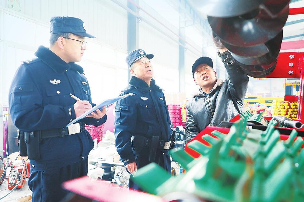 民警檢查農(nóng)機安全情況。2月20日,定西市公安局安定分局民輔警深入農(nóng)機制造、銷售網(wǎng)點,開展農(nóng)機安全隱患排查治理工作,助力春耕生產(chǎn)。新甘肅·甘肅法治報通訊員楊永剛攝