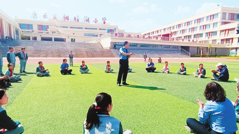 干警和孩子們游戲互動。近日,康樂縣檢察院組織干警走進康樂縣胭脂湖小學,開展法治進校園宣講活動,為未成年人健康成長構筑堅實司法屏障,用心用情守護“少年的你”。 新甘肅·甘肅法治報記者陳孝志攝