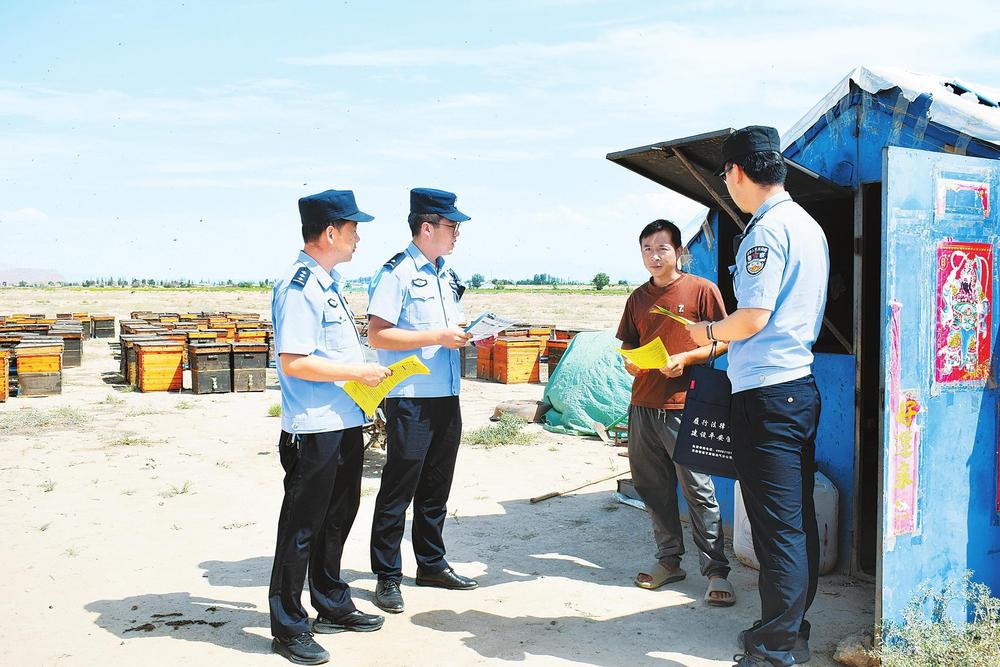 民警走進(jìn)蜂場宣傳安全知識。新甘肅·甘肅法治報(bào)通訊員王承棟攝
