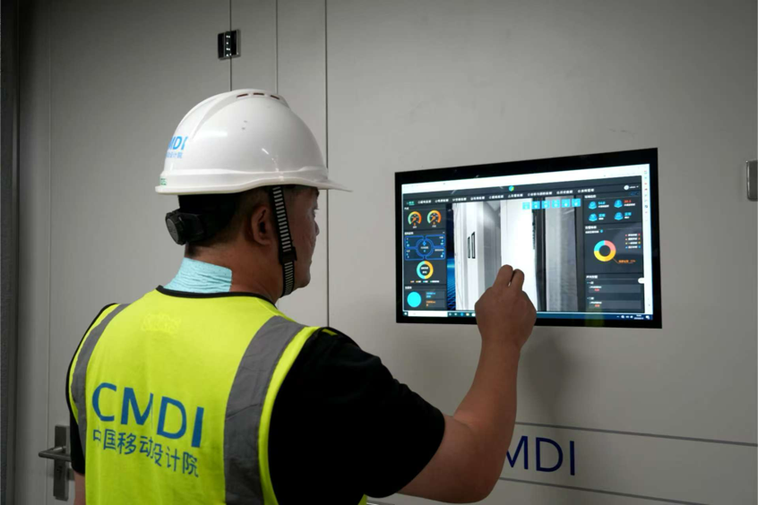中國移動(甘肅.慶陽)數據中心N01新型工業化數據中心工作人員正在進行設備檢查。慶陽融媒供圖