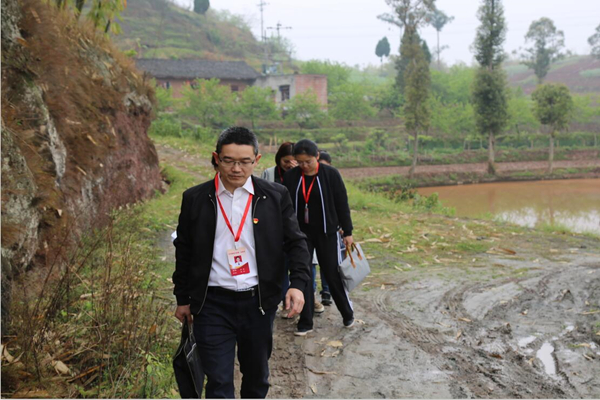 四川省隆昌市委巡察干部聚焦群眾最關心最直接最現實的利益問題,跋山涉水、翻山越嶺,把巡察利劍直插最基層,不斷提升群眾的獲得感、幸福感和安全感。圖為該市委巡察干部前往龍市鎮福慶村走村入戶收集脫貧攻堅領域問題線索。(四川省隆昌市紀委監委 周月玲 攝)
