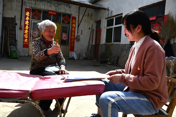 河南省孟州市紀委監委組織干部深入街頭巷尾、農家庭院,傾聽群眾的堵心事,摸排政策落實的“中梗阻”,用求真務實的作風換來群眾的笑容和點贊。圖為該市紀檢監察干部在槐樹鄉小石莊村核實惠農資金發放情況。(河南省孟州市紀委監委 王朝暉 攝)