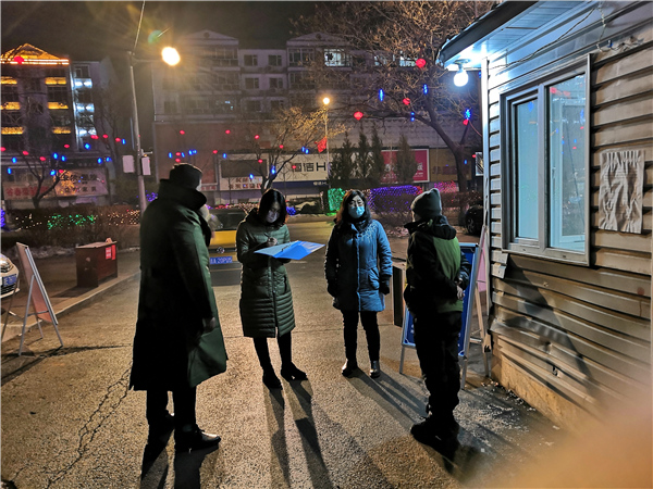 疫情防控期間,吉林省集安市紀委監委和巡察辦女同志組成聯合督查組,夜間深入小區防控監測點,對值班值守、網格化管理等情況開展督導,確保社區防控責任落實落細。(吉林省集安市紀委監委 李承育 攝)