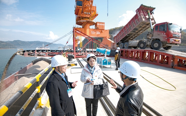 重慶市萬州區紀委監委圍繞推動成渝地區雙城經濟圈建設跟進監督,保障重點工程順利推進、廉潔高效。圖為萬州區紀檢監察干部深入重點水運項目新田港現場了解情況。 攝影/冉孟軍(萬州區紀委監委干部)
