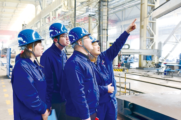 圖為蘭州蘭石集團有限公司紀檢監察干部在煉化公司裝焊車間監督重點項目推進情況。俞駿濤 攝