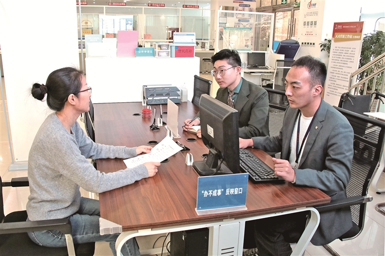 山東省青島市黃島區(qū)紀委監(jiān)委聚焦漠視群眾合理訴求、推諉扯皮“打太極”、不擔當不作為等不正之風,“懲治防”一體發(fā)力,堅決糾治不擔當不作為問題。圖為該區(qū)紀檢監(jiān)察干部在“辦不成事”反映窗口向群眾了解有關情況。杜翔宇 攝
