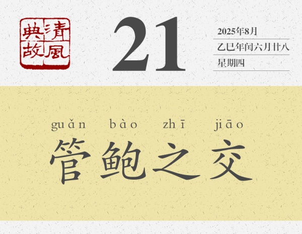管仲和鮑叔的深厚友誼,經受住了時間的考驗,經受住了名利的考驗,也經受住了生死的考驗,因而成為千古佳話。《列子•力命》:“管仲嘗嘆曰:‘吾少窮困時,嘗與鮑叔賈,分財多自與;鮑叔不以我為貪,知我貧也。吾嘗為鮑叔謀事而大窮困,鮑叔不以我為愚,知時有利不利也。吾嘗三仕,三見逐于君,鮑叔不以我為不肖,知我不遭時也。吾嘗三戰三北,鮑叔不以我為怯,知我有老母也。公子糾敗,召忽死之,吾幽囚受辱,鮑叔不以我為無恥,知我不羞小節而恥名不顯于天下也。”