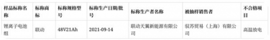 2021年上海市電動自行車鋰離子電池產品質量監督抽查不合格產品