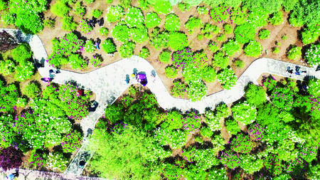 工人呂玉福告訴記者:“牡丹花朵里積存了大量雨水,如果不用繩子將牡丹捆綁,這些牡丹就會倒伏。”這些10年前栽植的牡丹,如今成為一道壯麗的城市景觀,形成了全長30公里的牡丹景觀帶。
