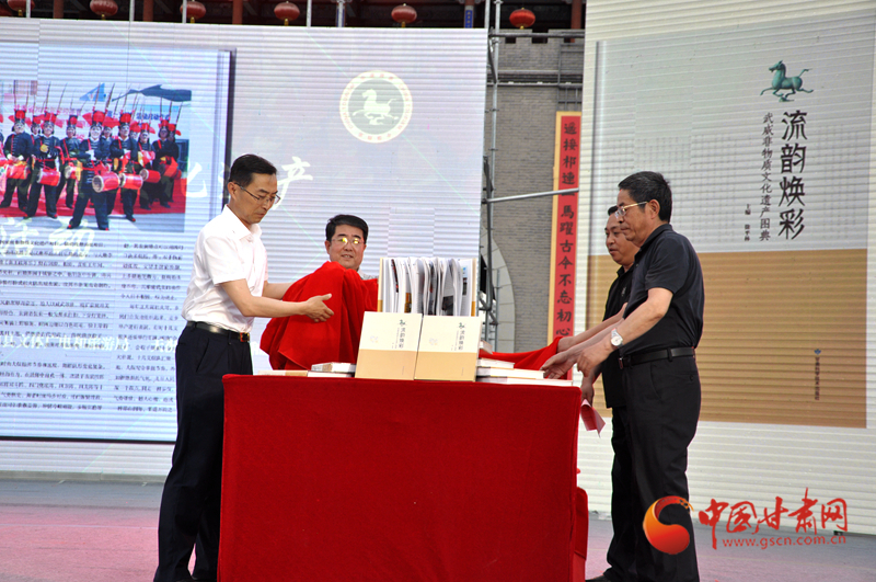 活動中,《流韻煥彩——武威非物質(zhì)文化遺產(chǎn)圖典》揭幕并首發(fā)。《流韻煥彩——武威非物質(zhì)文化遺產(chǎn)圖典》是由武威市文體廣電和旅游局組織編寫,讀者出版集團旗下的甘肅科學技術出版社出版,先后歷時5載。該圖典將散落在武威廣袤大地上的璀璨珍珠串連起來,將牽動著記憶深處的濃濃情思匯聚起來,展示了一個歷史武威、一個文化武威、一個多彩武威,是解讀武威的最好途徑。該圖典共收錄了84個非遺項目,81位項目代表性傳承人,用2000多張圖片和文字介紹,全方位、多角度展示了武威市非遺項目的獨特性、活態(tài)性、傳承性、流變性、綜合性、民族性、地域性等基本特點。該圖典最大的亮點,就是在國家級、省級項目中融入互聯(lián)網(wǎng)思維,加入二維碼視頻鏈接,對項目進行動態(tài)視頻展示,讓《圖典》不僅可看、可讀,而且能說會動,能唱會跳,實現(xiàn)了非遺項目活態(tài)傳承的創(chuàng)新。