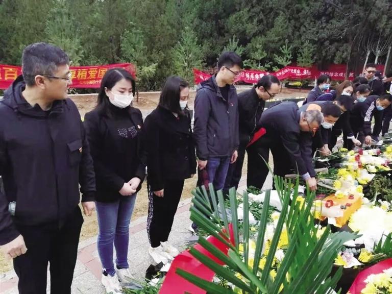 近日,市人社局直屬機關黨委組織60余名黨員干部在蘭州烈士陵園開展“緬懷戍邊英雄·傳承紅色基因”為主題的清明祭掃活動。 在“衛國戍邊英雄”陳紅軍烈士悼念廣場,黨員們為英雄敬獻了花籃。