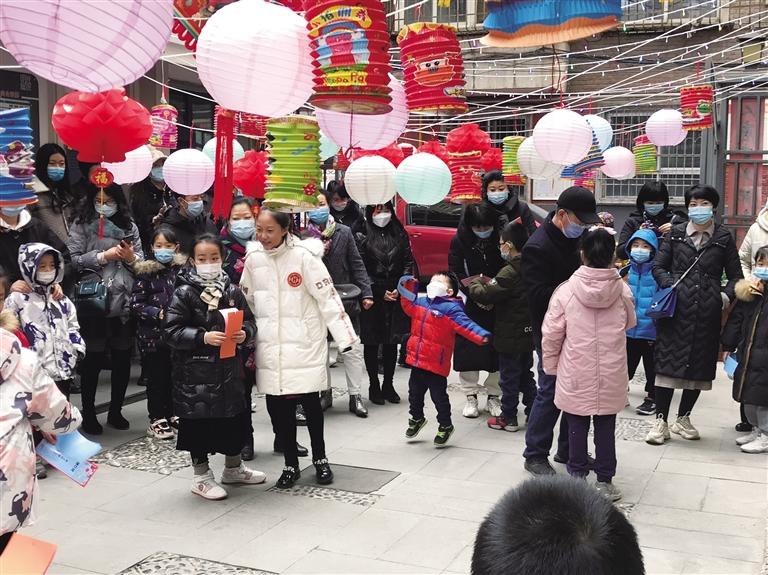 2月14日,酒泉路街道張家園社區聯合市、區駐守干部和社工委單位,秦絲韻葫蘆絲學校、金昌南路郵儲銀行等單位開展猜燈謎鬧元宵活動。