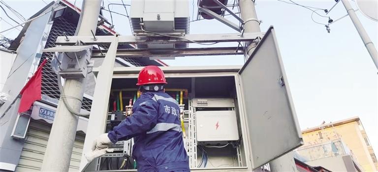 2月15日下午,正當市民們回家準備歡度元宵節之際,路燈設施養護所維修四班班長石興和他的團隊對北濱河路白云賓館附近的變壓器進行檢測。