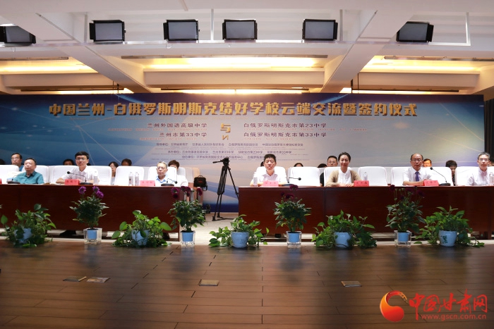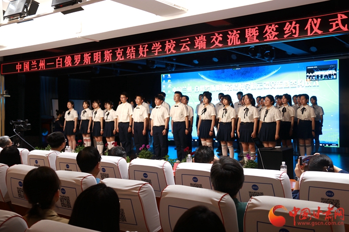 在蘭州外國語高級中學舉行的此次“中國蘭州—白俄羅斯明斯克結好學校云端交流暨簽約儀式”上,蘭州外國語高級中學與明斯克市第23中學、蘭州市第33中學與明斯克市第33中學校長及主要負責人經過交流后,分別簽署締結“百校結好”項目學校協議,正式建立友好合作關系。今后將在師生互訪、教師培訓、課程交流、國際學生社團建設等方面開展合作交流。之后,四所學校學生還分別表演了富有各國傳統文化和民族特色的文藝節目。